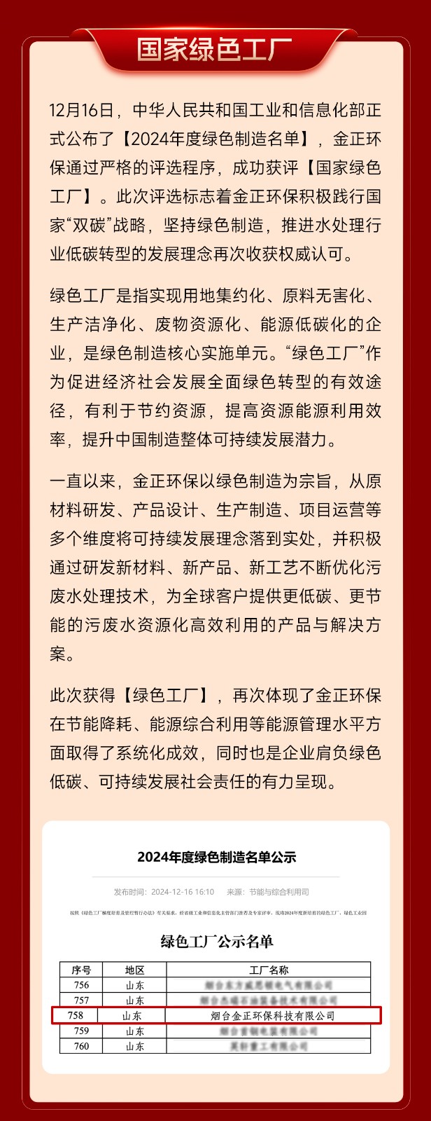 煙臺金正環(huán)保科技有限公司環(huán)境信息公開表(2024年)