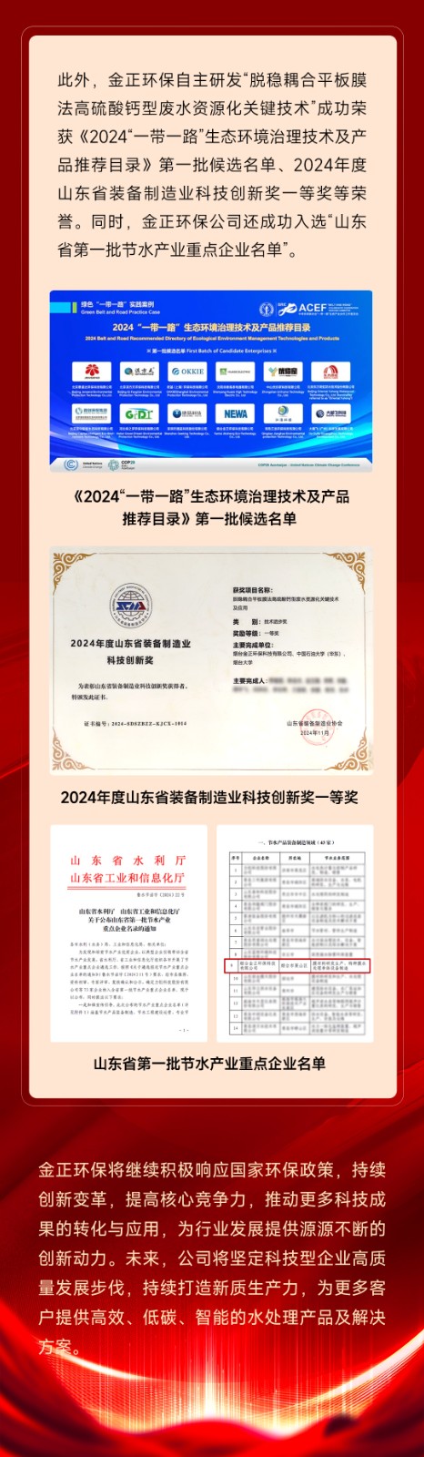 榮耀加冕!煙臺金正環(huán)保連獲多項大獎,行業(yè)影響力和技術(shù)實力再獲認(rèn)可!
